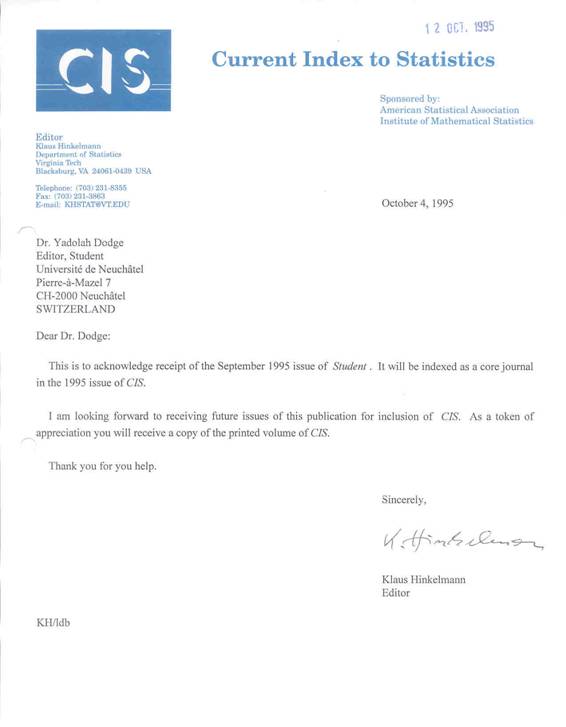 JOURNAL INTERNATIONAL DE STATISTIQUE: Student